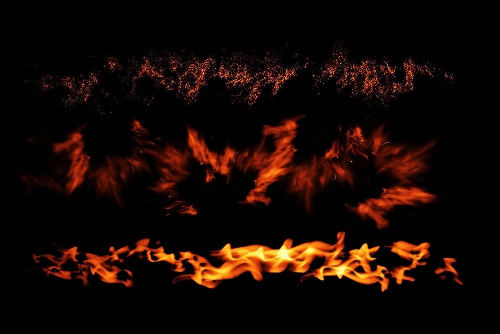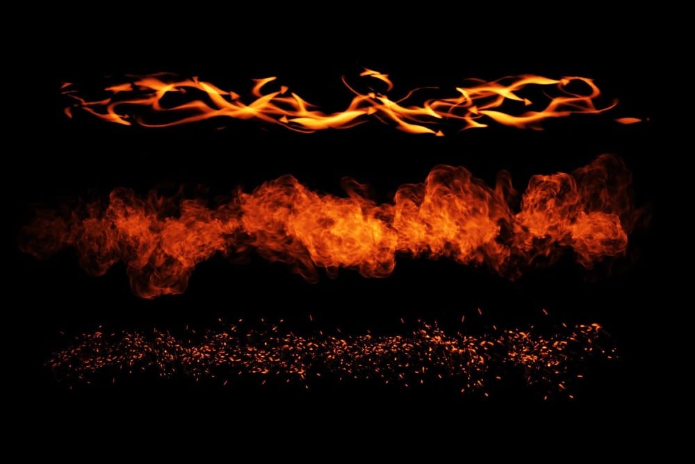 The set covers a wide range of styles, from natural-looking flames to more intense fire and detailed spark effects. This makes it easy to match different moods, whether you need subtle background fire or strong, dramatic elements in your artwork.