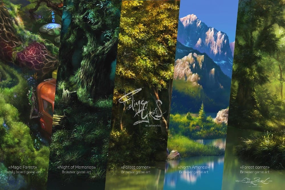 This professional brush collection is designed for creating realistic natural environments, offering a comprehensive set of tools for painting forests, trees, grass, and mosses. Developed by artist Eldar Zakirov, the Foliage & Grass set provides 60 high-quality presets specifically engineered to handle the complex textures of nature with ease.