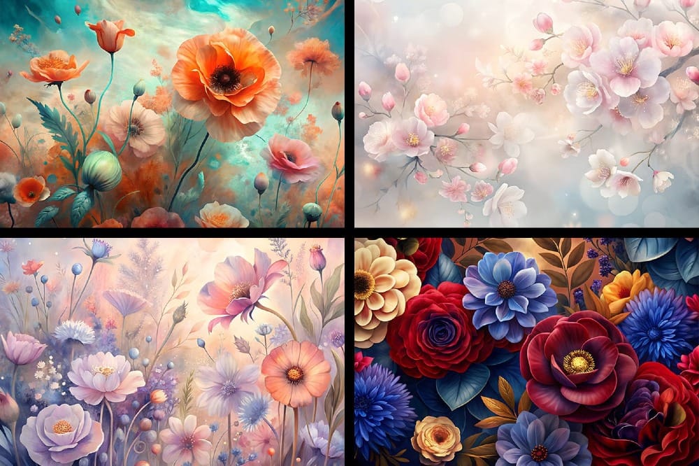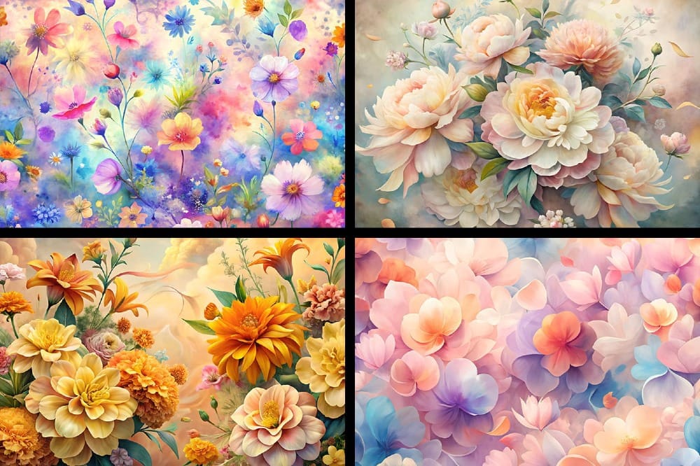 These pastel floral backgrounds are ideal for scrapbooking, planners, stationery, journal pages, book covers, posters, wall art, packaging, branding, website graphics, social media designs, print-on-demand products, digital crafts, and creative paper projects.