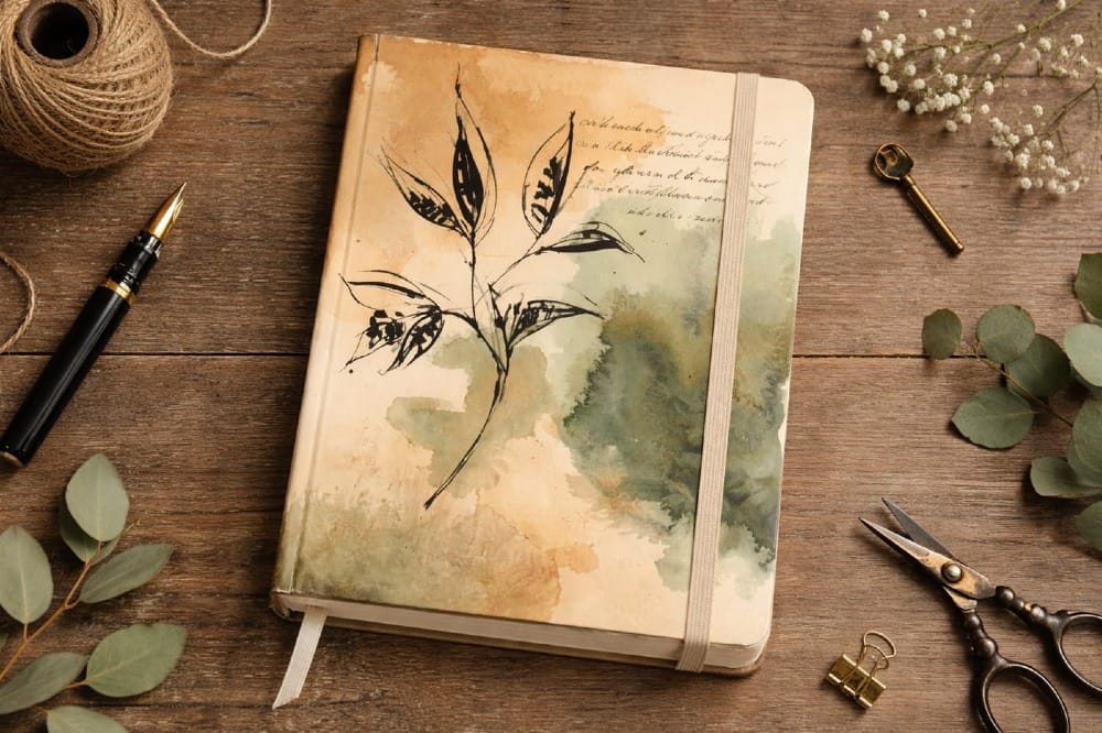 The result is a balanced mix of ink illustration, watercolor softness, and textured paper surfaces that feel natural, artistic, and timeless.