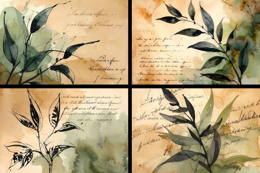 These botanical abstract backgrounds are ideal for scrapbooking, planners, stationery, journal pages, book covers, posters, wall art, packaging, branding, website graphics, social media designs, print-on-demand products, digital crafts, and creative paper projects.