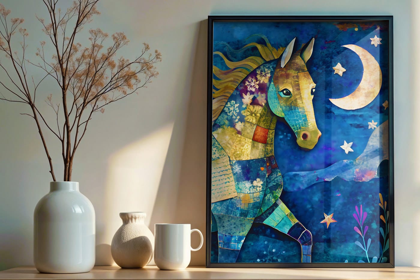 Moonlit Horse – Digital Art Print captures a calm, dreamlike moment of a horse standing beneath a glowing moon. The free version gives you a beautiful, ready-to-use artwork that’s perfect for personal projects, quiet home spaces, and creative inspiration. With soft lighting and gentle contrast, this piece brings a peaceful, almost magical feeling to any room or screen.