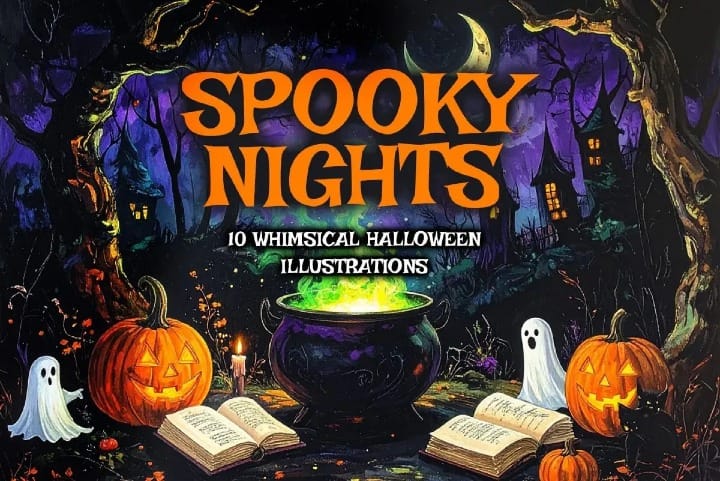 Spooky Nights: 10 Free Whimsical Halloween Illustrations