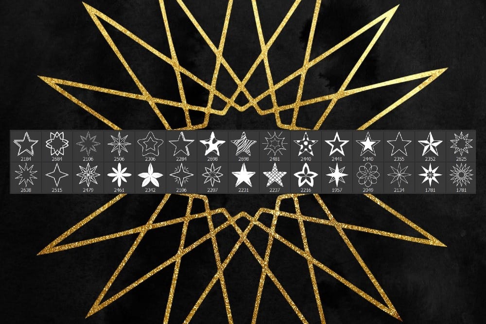 This set includes 30 star Photoshop stamp brushes created to add clean, decorative star elements to many types of creative projects. Each brush is high quality, with sizes ranging from 2000 to 2500 pixels, making them suitable for both digital and print use. The brushes work as stamp brushes, allowing you to place individual star designs quickly and with precision.