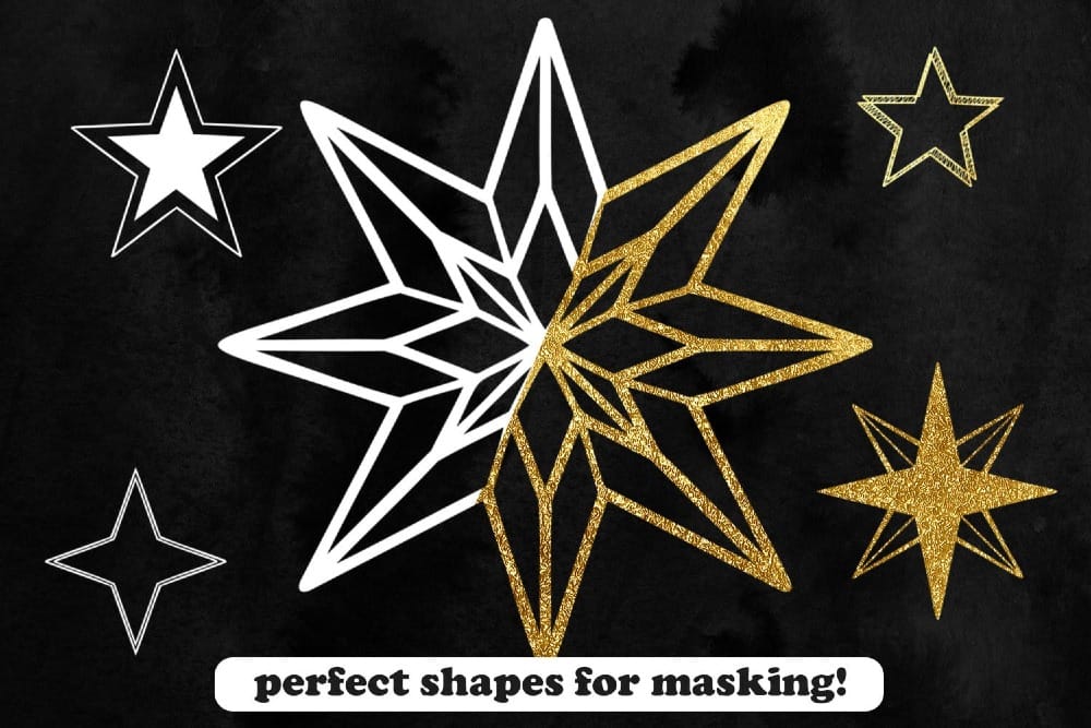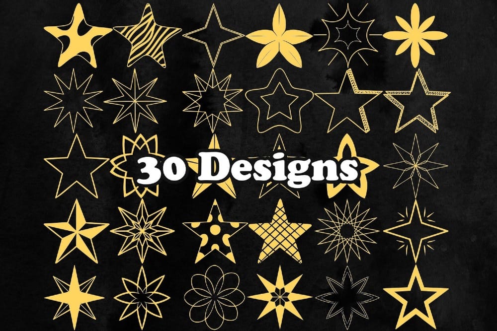 The pack also includes 30 isolated PNG images, giving you extra flexibility to use the stars outside of Photoshop or drop them directly into layouts without any extra steps. These stars can be used for photo edits, graphic design, web design, posters, cards, print materials, social media graphics, tattoo base designs, and other decorative uses. They work well as standalone elements or layered into larger compositions.