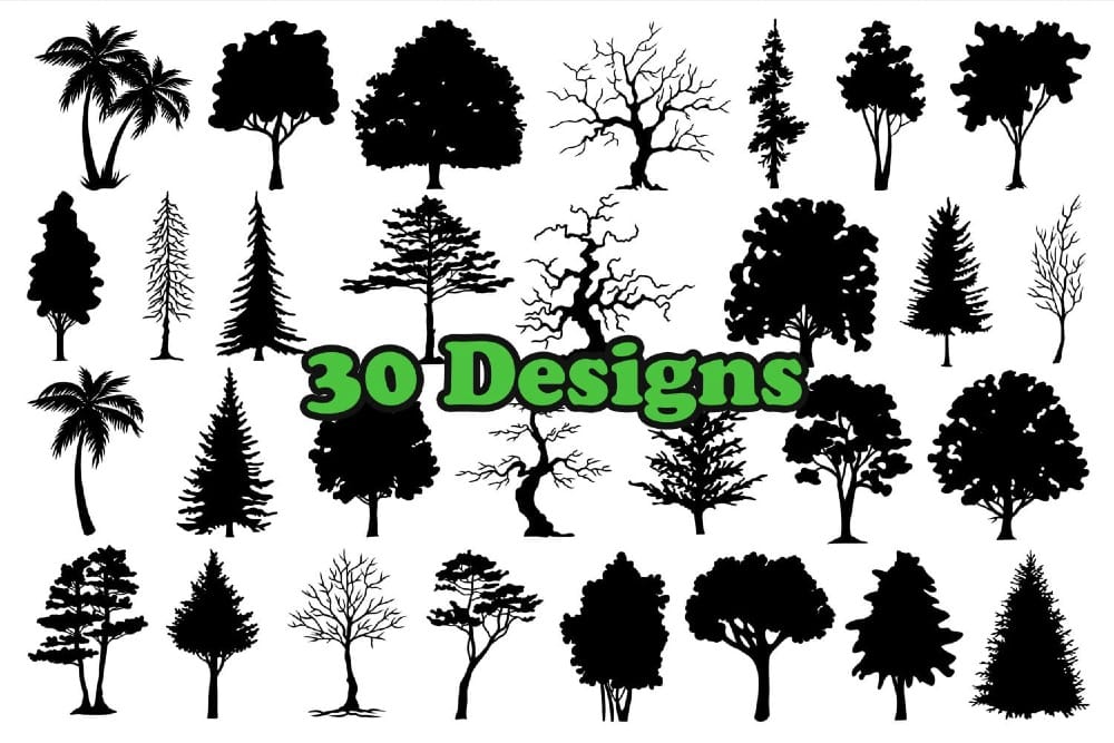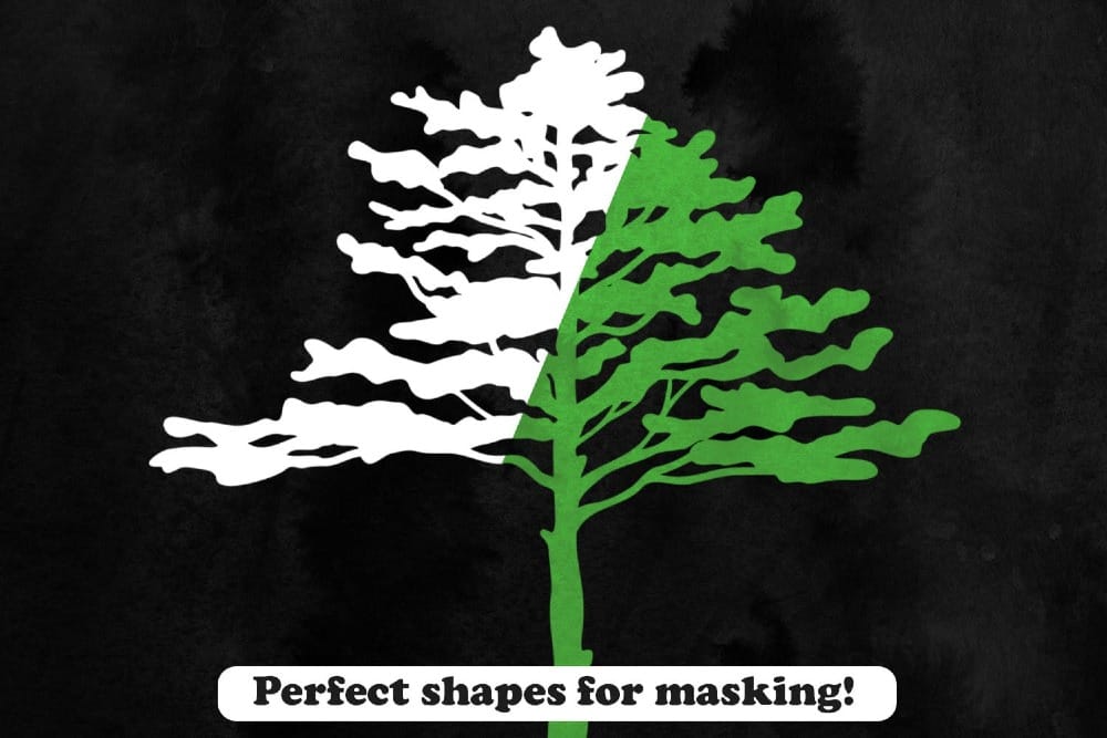Each tree is provided as a Photoshop stamp brush, making it easy to place, resize, and rotate trees directly onto your canvas. The set also includes 30 isolated PNG images, giving you extra flexibility for use outside Photoshop or in layout-based projects.
